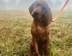 Το Redbone Coonhound είναι μια αμερικανική φυλή με καταγωγή από τα τέλη του 18ου αιώνα στις νότιες Ηνωμένες Πολιτείες. Αναπτύχθηκε μέσα από διασταυρώσεις Foxhounds και Bloodhounds για να δημιουργηθεί ένας σκύλος γρήγορος, ευκίνητος και ανθεκτικός, ικανός να εντοπίζει και να «δένει» ρακούν. Το χαρακτηριστικό κόκκινο τρίχωμά του έγινε το σήμα κατατεθέν της φυλής και παραμένει αναλλοίωτο μέχρι σήμερα. Εκτός από τις κυνηγετικές του ικανότητες, το Redbone Coonhound είναι στοργικό, κοινωνικό και ιδιαίτερα δεμένο με την οικογένεια, ενώ χάρη στην ηχηρή και μελωδική φωνή του ξεχωρίζει όταν βρίσκεται σε δράση. Αναγνωρίστηκε από το United Kennel Club το 1902 και από το AKC το 2009, καθιερώνοντας τη θέση του ως έναν σκύλο που συνδυάζει εξαιρετική κυνηγετική παράδοση με οικογενειακή συντροφικότητα.